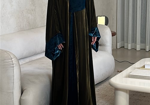 • مخمل ترتر تركواز & مخمل سادة بلون زيتي