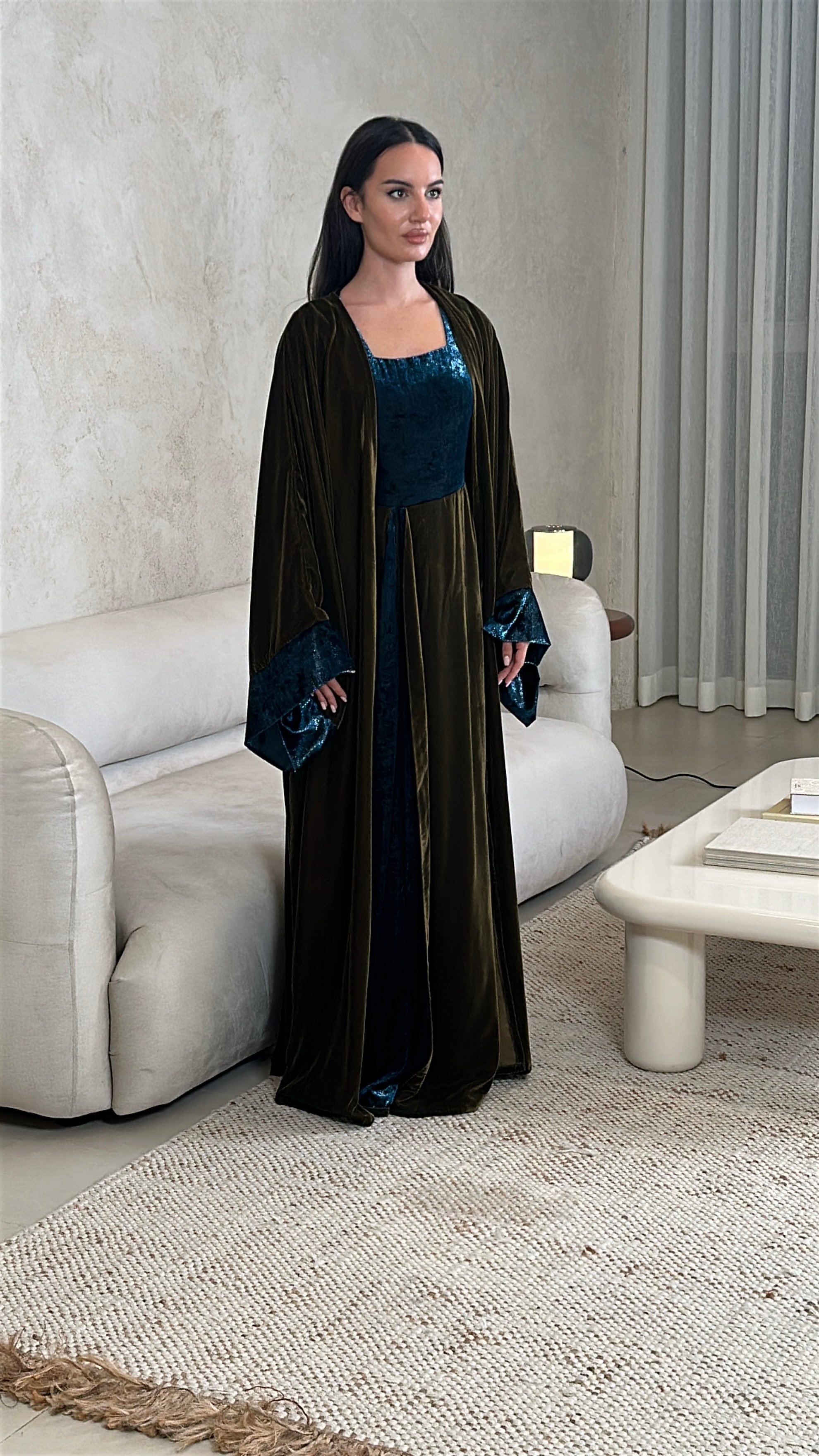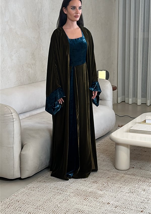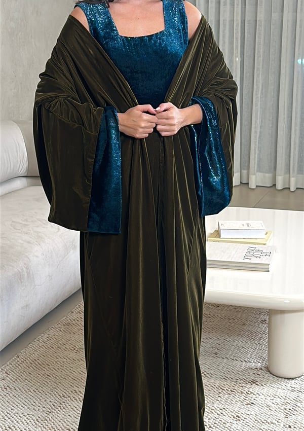 • Turquoise sequin velvet & plain olive velvet