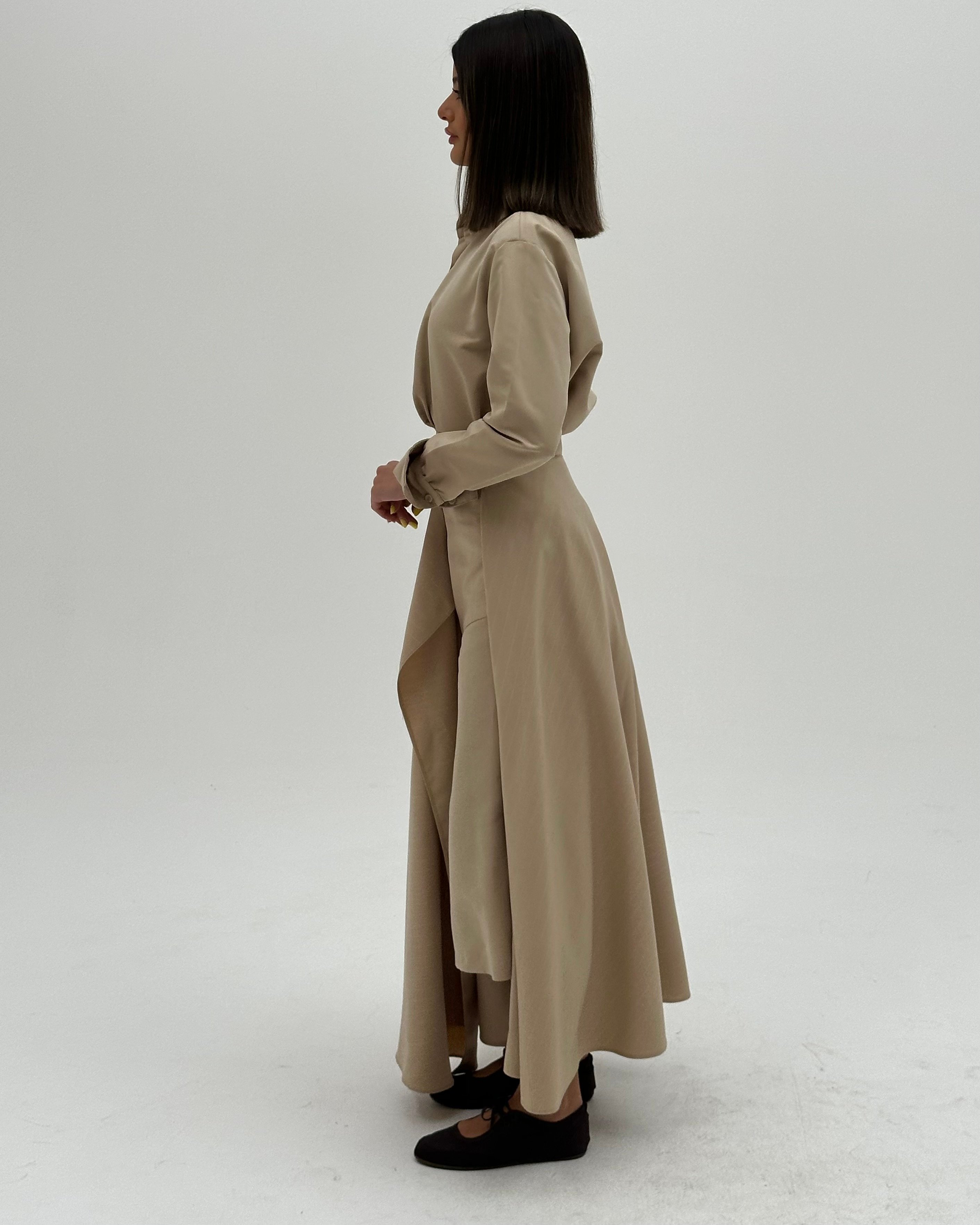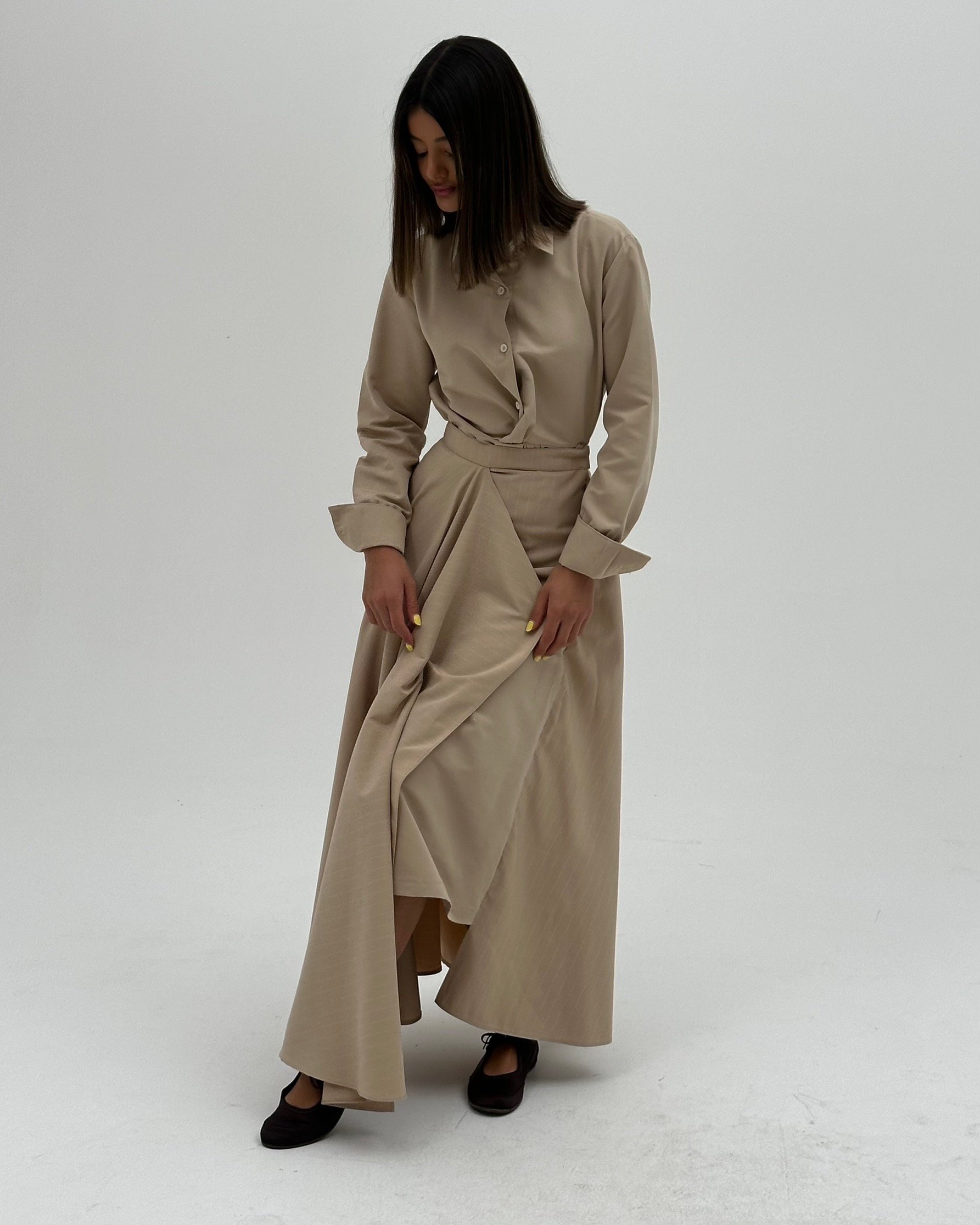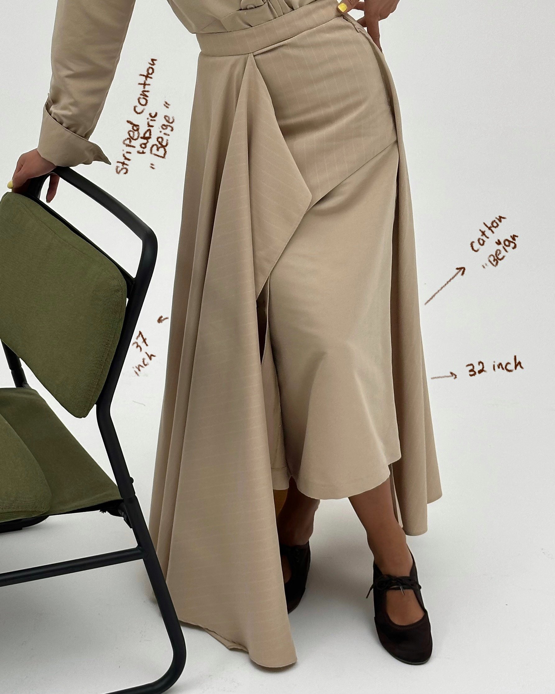 - Skirt: Mix of plain beige cotton & striped beige cotton