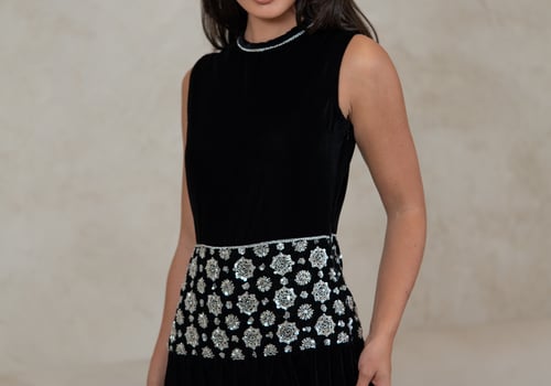 • Special panel at the hip area featuring velvet with Indian silver embroidery