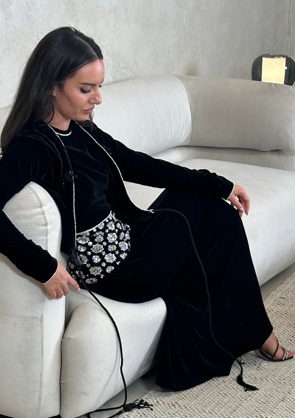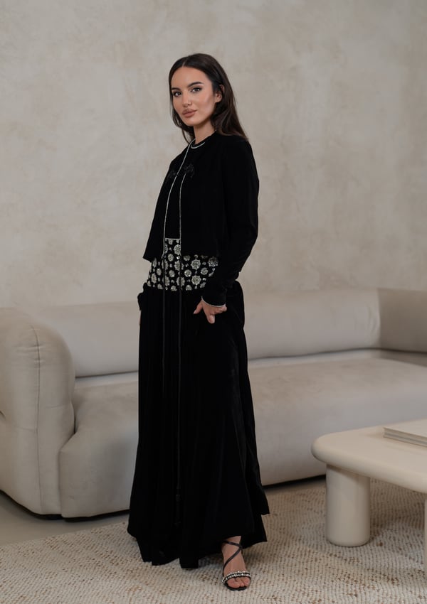 The Waqār Kaftan is a luxurious two-piece design consisting of a jacket and dress, thoughtfully crafted to combine elegance and comfort. Perfect for Ramadan gatherings and evening occasions.